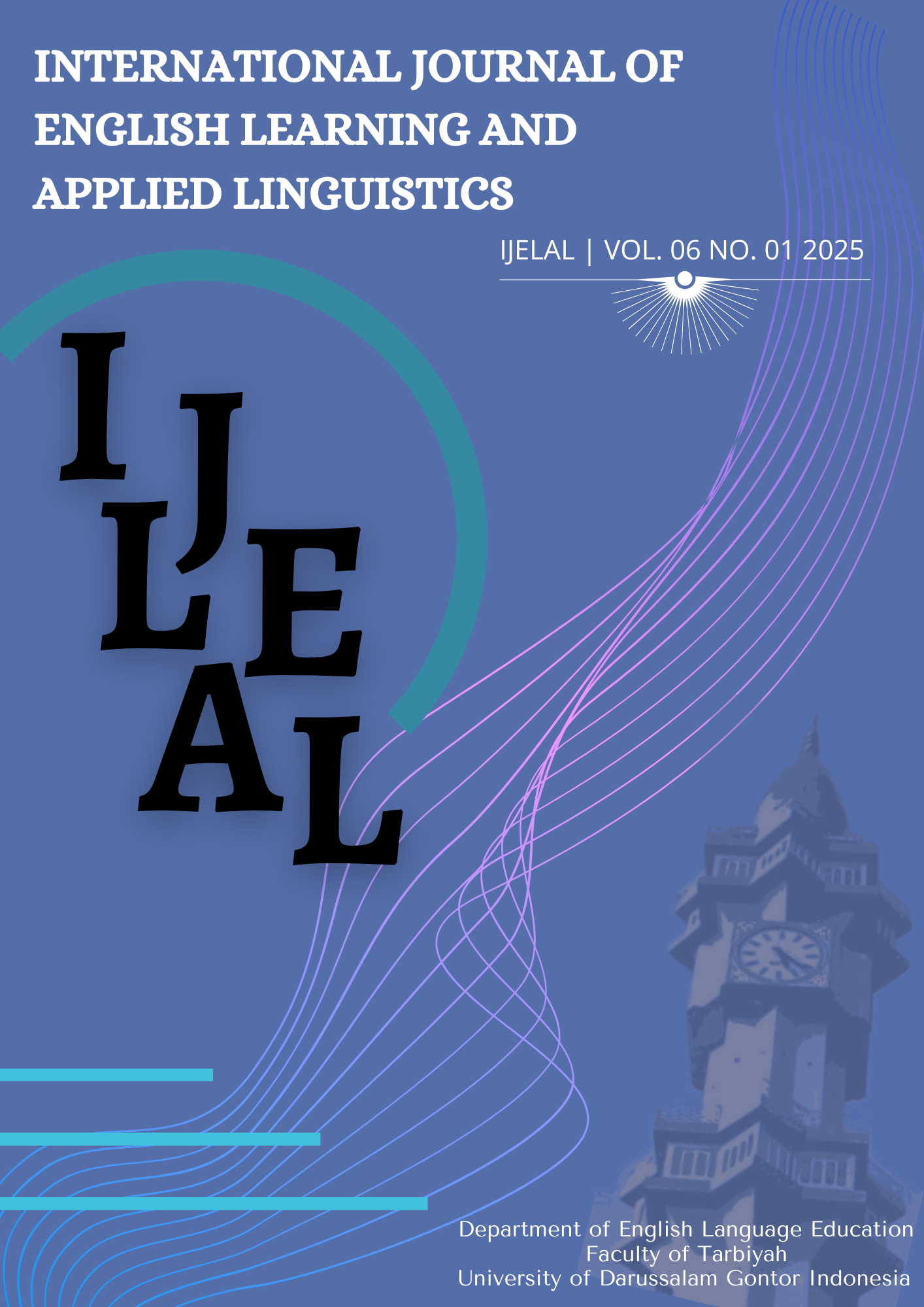 International Journal of English Learning and Applied Linguistics (IJELAL), e-ISSN 2775-4359, is a peer-reviewed and open-access academic journal publishes biannually in December and June by the Department of English Language Teaching, Universitas Darussalam Gontor, Ponorogo, Indonesia. The journal aims to present some contemporary issues in the field of Educational English Studies using an interdisciplinary perspective, Applied Linguistics, General Linguistics and Literature, and Translation.